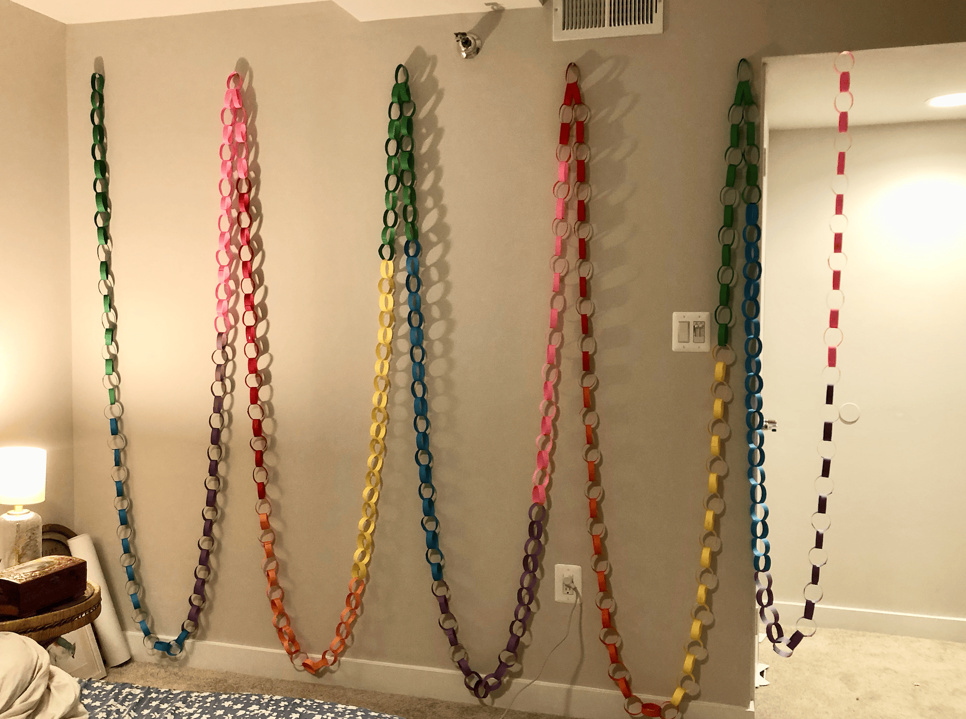 Along with my vision board, I wanted a visual representation of my debt, too. I went ahead and made a paper chain for all of my debt. Each chain represents a dollar amount, and every time you make a payment, you cut off the chains. I hung them on my bedroom wall where I would see them every day. Cutting off those chains with every payment was so motivating. I could see my progress every time I looked at them. This exercise really helped me feel excited to pay off my debt. Here is a video tutorial for how to make your own paper chains of debt.