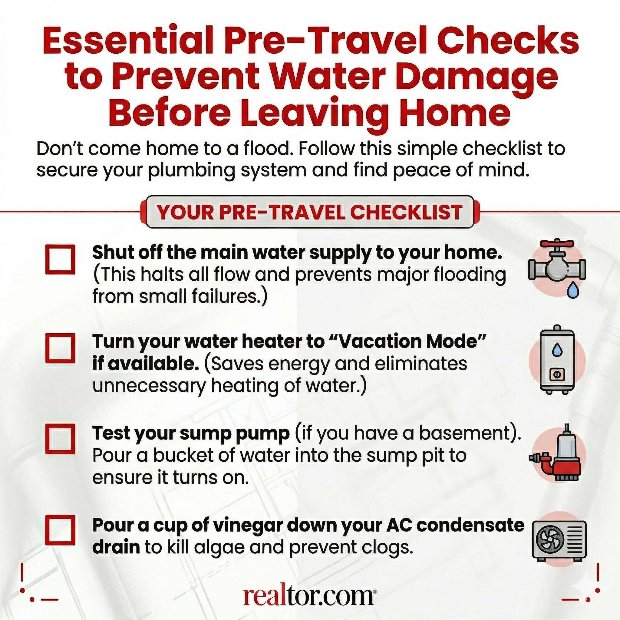 Before you leave for your trip, it’s important to be proactive and take preventive measures to protect your home, sanity, and finances while you’re away.
